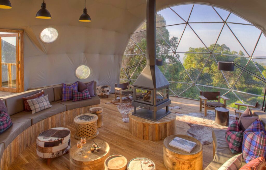 Adventurous travelers will appreciate The Highlands Ngorongoro, known for its futuristic dome suites, wood-burning stoves, and panoramic views of the highlands. This 5-star lodge provides a unique combination of modern design, comfort, and access to the breathtaking Ngorongoro landscapes.